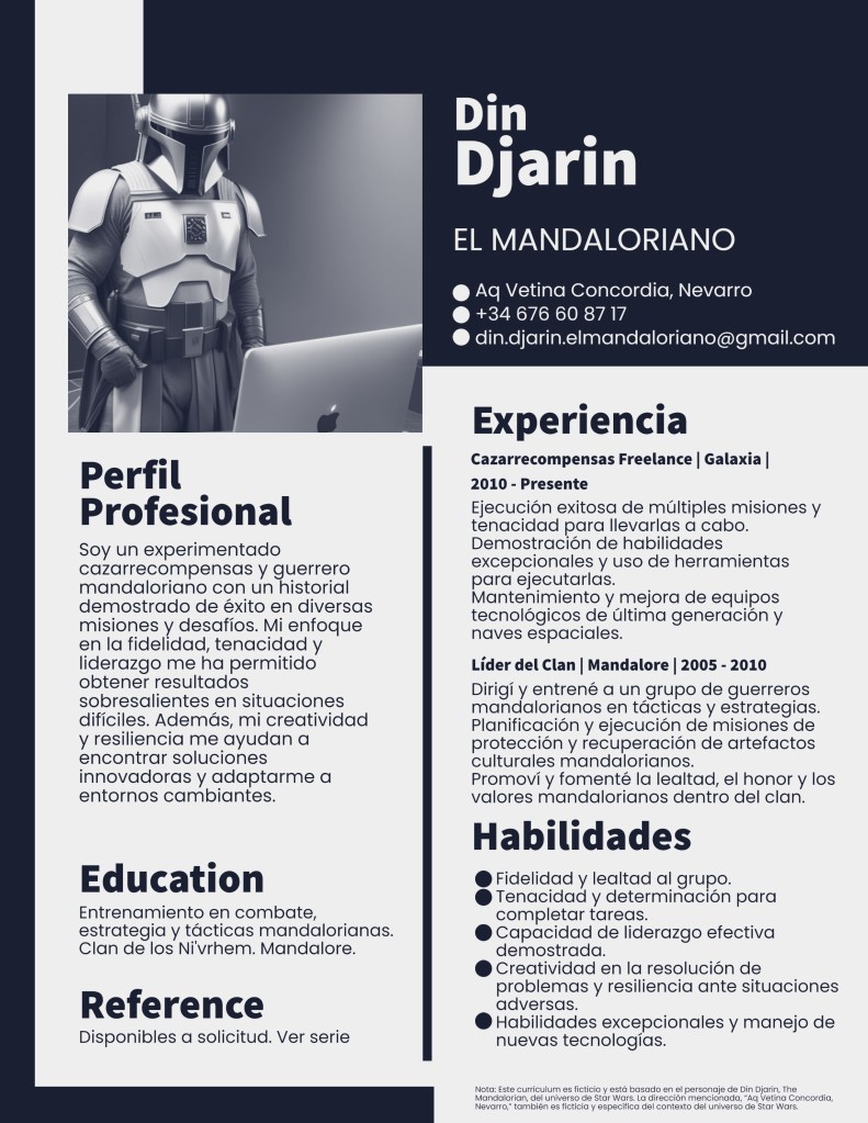 Sí te sientes identificado con este personaje en tu vida laboral, como yo, comparte, comenta… Vamos a decirle al mundo que los mandalorianos hemos venido a encontrar nuestro sitio en el mundo laboral y estamos aquí para quedarnos.